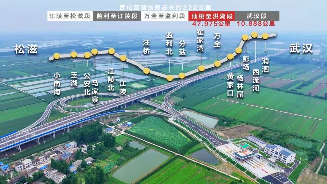 作為《湖北省綜合交通運輸發展“十四五”規劃》重點項目,武松高速是湖北省“九縱五橫三環”高速公路網的關鍵聯絡線,由武漢段、仙桃至洪湖段等5段組成,總長約222公里。其中,仙桃至洪湖段項目于2022年12月28日開工,起于仙桃西流河,止于洪湖萬全鎮,全長47.97公里(仙桃36.466+洪湖11.509公里)。