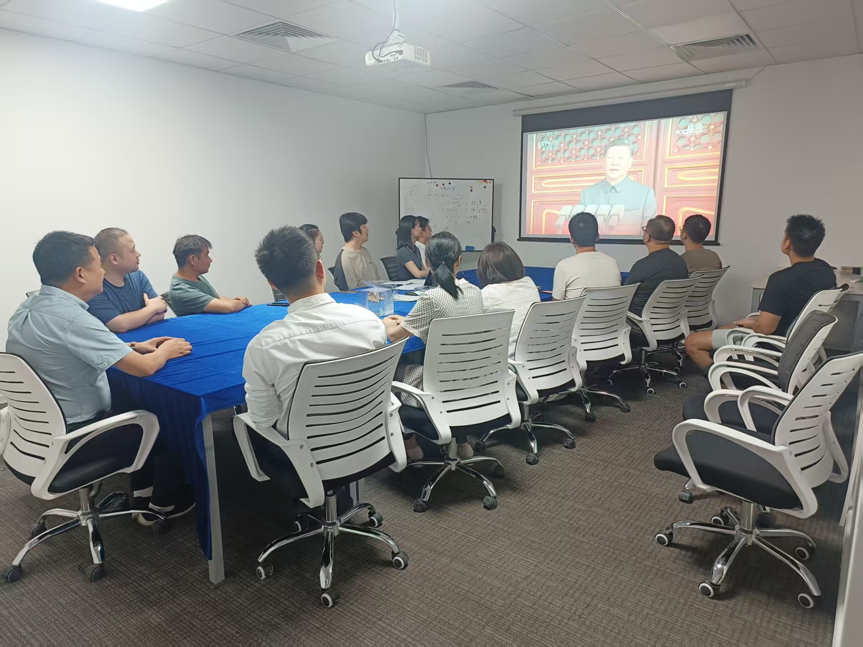 上午9時(shí),大家準(zhǔn)時(shí)聚集在各公司的會(huì)議室,自發(fā)整理好衣襟,眼神中滿是期待與肅穆。當(dāng)直播畫面切到天安門廣場(chǎng),鮮艷的五星紅旗在晨光中冉冉升起,激昂的歌聲里,是跨越代際的信仰傳承,是屬于京蘭人的集體共鳴。?